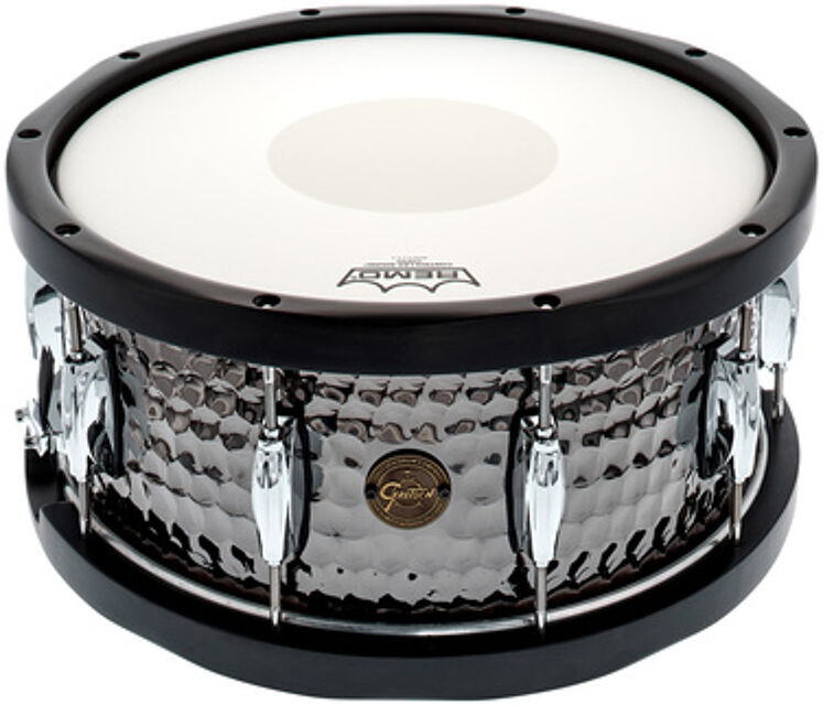 "Gretsch Drums 14""x6,5"" Black Hammered Sn.WH, Caisse claire 14""x6,5"", Collection Fullrange, Fût en acier martelé, Epaisseur du fût: 1,2 mm, Cercles 13 plis en érable laqué noir, 10 tirants par cercle, Peau de frappe Remo USA 14"" CS Coated"Caractéristiques