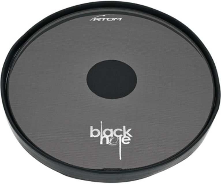 "RTOM 16"" Black Hole Practice Pad, Pad d'entraînement, Diamètre: 16"", Réduit le volume des fûts jusqu'à 80%, Le son de base des fûts reste conservé, Se pose simplement sur le fût, La tension désirée de la peau mailléee peut être ajustée avec une seule vis"Caractéristiques