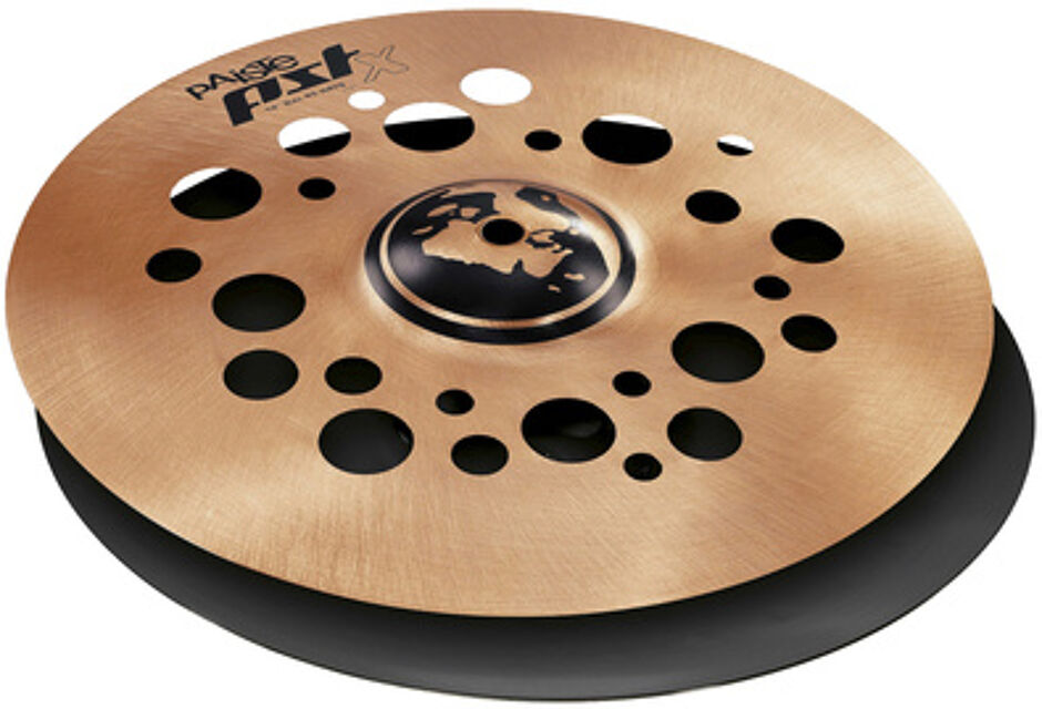 "Paiste 18"" PSTX Swiss Flanger Stack, Cymbal Stack, Size: 18"", PSTX series, Silk-matte finish, Combination of two different materials: Bronze/brass – the result is a dry, assertive sound, Mounted on a cymbal stand and rotated depending on the screw position, this produces an open or closed sound character"Caractéristiques