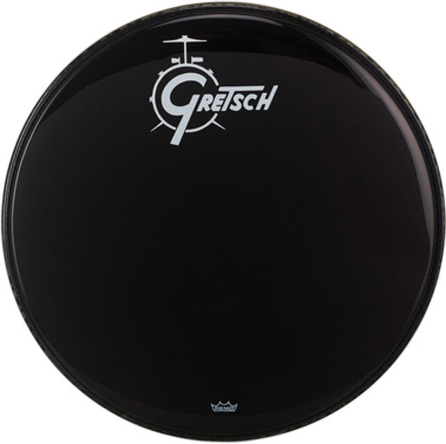 "20"" Bass Drum Head Black/Logo Noir avec logo Gretsch blanc"