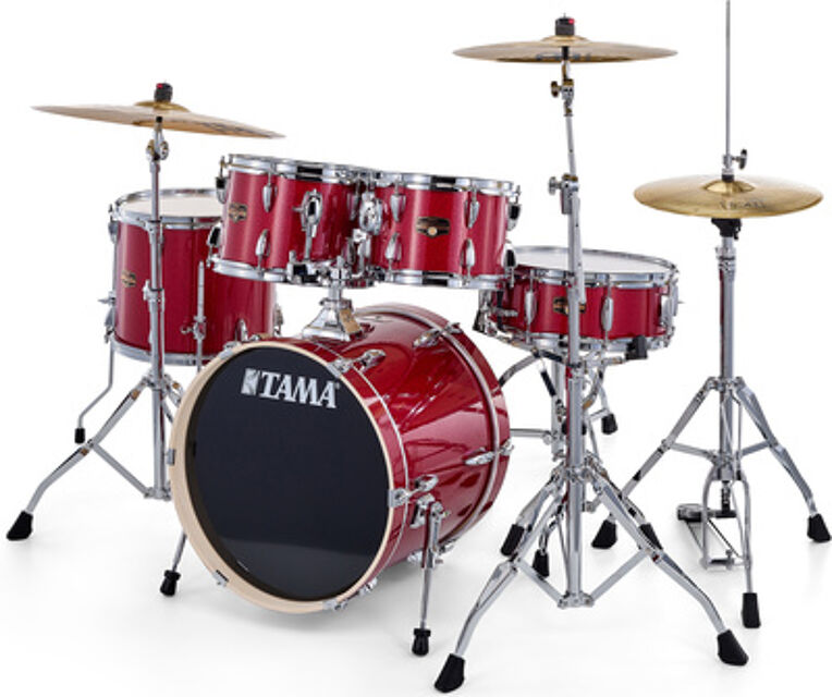 "Tama Imperialstar 18"" 5pcs -BRM, Batterie complète, Série Imperialstar, Modèle IP58H6W-BRM, Fûts 6 plis (8 mm) en peuplier, Accastillage chromé, Support de tom Omnisphere, Pack de hardware de la série Stage Master, Finition: Rhodoïd, Couleur: Burnt Red Mist@+*Configuration du kit:*, Grosse caisse 18"" x 16"", Tom 10"" x 07"", Tom 12"" x 08"", Stand tom 14"" x 12"", Caisse claire 14"" x 05""@+*Pack de hardware:*, Pied droit de cymbale, Pied perche de cymbale, Pied de caisse claire, Pédale de charleston, Pédale de grosse caisse, Siège@+*Set de cymbales Meinl HCS en bronze:*, Cymbales charleston 14"", Crash 16"", Ride 20"""Caractéristiques