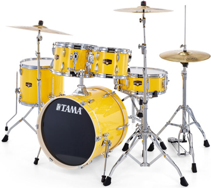 "Tama Imperialstar 18"" 5pcs -ELY, Batterie complète, Série Imperialstar, Fûts 6 plis (8 mm) en peuplier, Accastillage chromé, Support de tom Omnisphere, Pack de hardware de la série Stage Master, Finition: Rhodoïd, Modèle IP58H6W-ELY, Couleur: Electric Yellow@+*Configuration du kit:*, Grosse caisse 18"" x 16"", Tom 10"" x 07"", Tom 12"" x 08"", Stand tom 14"" x 12"", Caisse claire 14"" x 05""@+*Pack de hardware:*, Pied droit de cymbale, Pied perche de cymbale, Pied de caisse claire, Pédale de charleston, Pédale de grosse caisse, Siège@+*Set de cymbales Meinl HCS en bronze:*, Cymbales charleston 14"", Crash 16"", Ride 20"""Caractéristiques