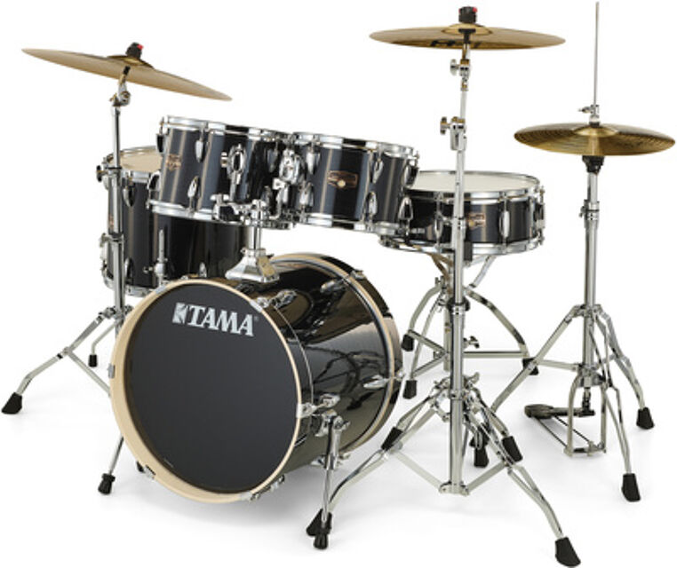 "Tama Imperialstar 18"" 5pcs -HBK, Batterie complète, Série Imperialstar, Modèle IP58H6W-HBK, Fûts 6 plis (8 mm) en peuplier, Accastillage chromé, Support de tom Omnisphere, Pack de hardware de la série Stage Master, Finition: Rhodoïd, Couleur: Hairline Black@+*Configuration du set:*, Grosse caisse 18"" x 14"", Tom 10"" x 07"", Tom 12"" x 08"", Stand tom 14"" x 12"", Caisse claire 14"" x 05""@+*Pack de hardware:*, Pied droit de cymbale, Pied perche de cymbale, Pied de caisse claire, Pédale de charleston, Pédale de grosse caisse, Siège@+*Set de cymbales Meinl HCS en bronze:*, Cymbales charleston 14"", Crash 16"", Ride 20"""Caractéristiques