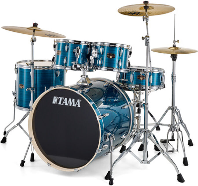 "Tama Imperialstar 22"" 5pcs -HLB, Batterie complète, Série Imperialstar, Modèle IP52H6W-HLB, Fûts 6 plis (8 mm) en peuplier, Accastillage chromé, Support de tom Omnisphere, Pack de hardware de la série Stage Master, Finition: Rhodoïd, Couleur: Hairline Blue@+*Configuration du kit:*, Grosse caisse 22"" x 18"", Tom 10"" x 07"", Tom 12"" x 08"", Stand tom 16"" x 14"", Caisse claire 14"" x 05""@+*Pack de hardware:*, Pied droit de cymbale, Pied perche de cymbale, Pied de caisse claire, Pédale de charleston, Pédale de grosse caisse, Siège@+*Set de cymbales Meinl HCS en bronze:*, Cymbales charleston 14"", Crash 16"", Ride 20"""Caractéristiques