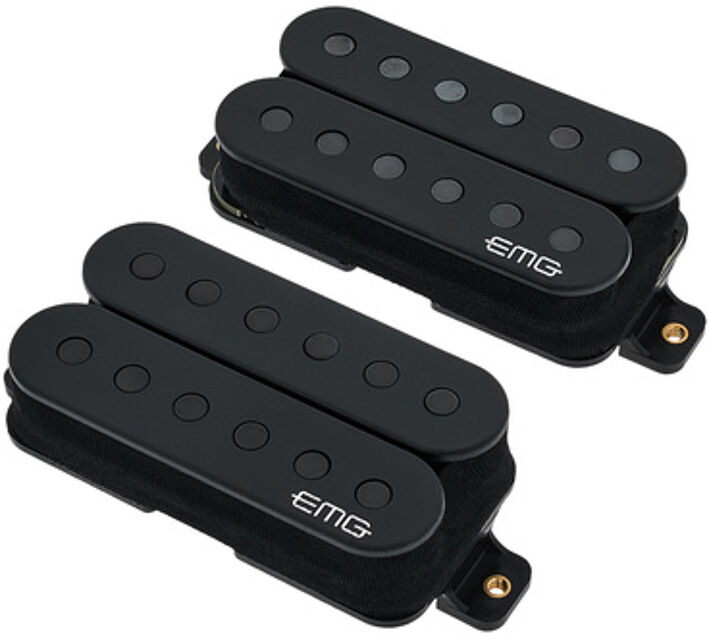 "EMG JR ""Daemonum"" Set BK, Set de micros actifs pour guitare électrique, Set signature Jim Root, Positions chevalet et manche, Micros double bobinage, Puissance de sortie élevée, Espacement des cordes standard, Connexions sans soudure, Aimants: micro chevalet en céramique/acier, micro manche en céramique, Couleur: Noir@+*Système d'installation exclusif EMG sans soudure incl.: 2 potentiomètres de volume 25k (axes courts de 10 mm), 2 potentiomètres de tonalité 25k (axes courts de 10 mm), Port pour pile, Prise de sortie stéréo, 2 bus In/Out pour micro, 2 paires de vis de fixation et ressorts, 2 câbles pour micro, 4 câbles de connexion, Câble de sortie, Câble pour pile, Fabriqué aux États-Unis"Caractéristiques
