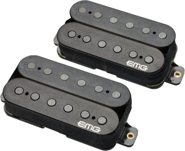 "EMG JR ""Daemonum"" Set LS BK, Active Pickup Set for Electric Guitar, Jim Root (Slipknot) Signature set, Humbucker, For bridge and neck position, Output: High, String spacing: Standard, Connectors: Solderless, Magnet material (bridge): Ceramic / steel, Magnet material (neck): Ceramic, Colour: Black, Made in USA@+*Set includes:*, EMG's exclusive solderless installation system: 2 x 25k volume potentiometers (long shaft 19 mm), 2 x 25k tone potentiometers (long shaft 19 mm), Battery bus, Stereo output socket, Two pickup in/out bus, Two pairs of fixing screws and springs, Two pickup cables, Four connecting cables, Output cable, Battery cable"Caractéristiques