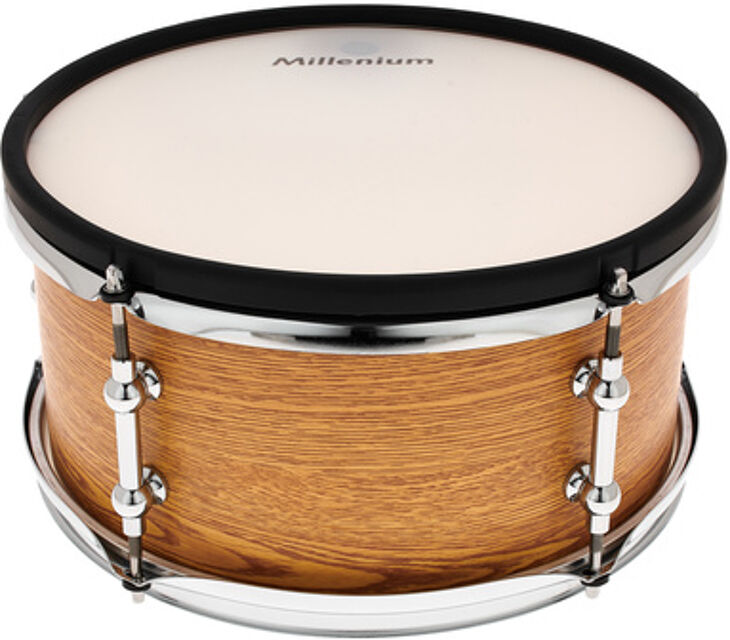 "Millenium PT-12 12""x06"" Tompad NT, Pad de tom, Taille: 12"" x 06"", Convient pour le module de sons/batterie Millenium MPS-1000, 2 zones de jeu, Peaux maillées double pli, Fût en bois, Couleur: Naturel, Câble incl."Caractéristiques