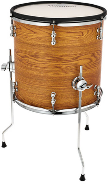 "Millenium PT-14 14""x14"" Tompad NT, Stand tom électronique, Taille: 14"" x 14"", Convient pour le module de sons Millenium MPS-1000, 2 zones de jeu, Fût en bois, Peaux maillées double pli, Avec pieds de stand tom, Couleur: Naturel, Câble incl."Caractéristiques
