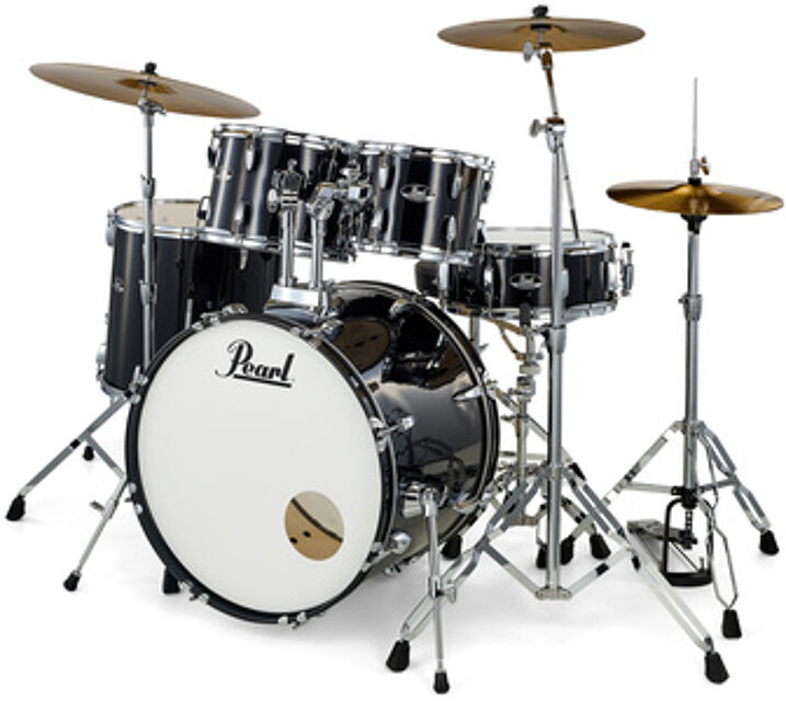 "Pearl Roadshow 22"" Plus Jet Black, Batterie complète, Série Roadshow, RS525SBC/C31, Version Fusion, Grosse caisse 22""x16"", Tom 10""x08"", Tom 12""x09"", Stand tom 16""x16"", Caisse claire 14""x5,5"", Fûts 9 plis en peuplier, Epaisseur des fûts: 7 mm, Accastillage chromé, Finition: Rhodoïd, Couleur: Jet Black@+*Accessoires inclus:*, Pack de hardware double embase, Pédale de grosse caisse double chaîne, Siège, Pack de cymbales Sabian Solar (Hi-Hat 14"", Crash 16"", Ride 20""), Paire de baguettes, Housse pour baguettes"Caractéristiques